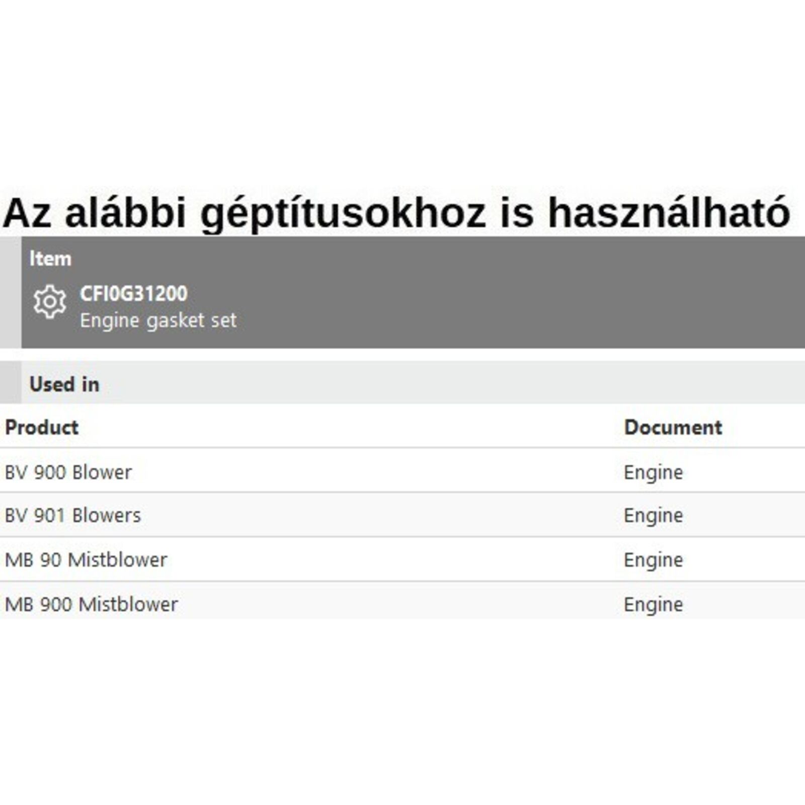 Tömítés készlet (motor, kicsi) BV 900, BV 901, MB 90, MB 900