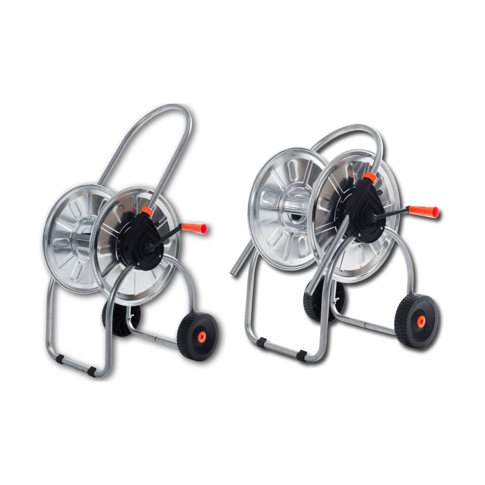 Tömlődob horganyzott acélból. Egyetlen csőből készült keret hegesztés nélkül a maximális teherbírás biztosítása érdekében; a speciális támasztékoknak köszönhetően a fogantyú elcsúsztatható, így beállítható a magassága és csökkenthető a kocsi teljes mérete, amikor használat után tárolni kell. Acél betéttel ellátott hajtókarral van felszerelve.
