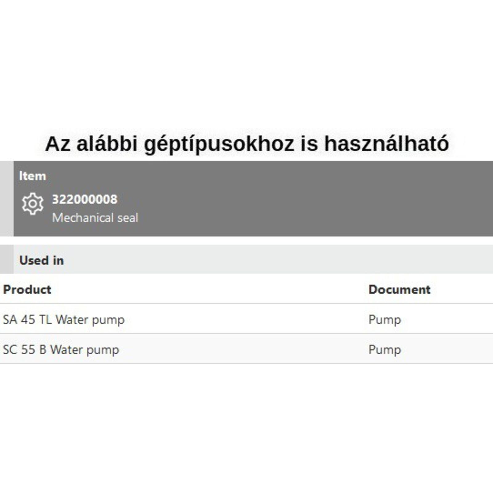 Tömszelence, csúszógyűrűs tömítés SA 45 TL, SC 55