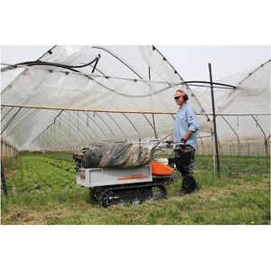 Az építőipari és mezőgazdasági munkákhoz ideálisan alkalmazható Oleo-Mac transzporterek terjedelmes és nehéz szállítmányok mozgatását végzik, akár lejtős és egyenetlen terepen is. Ezek a legszigorúbb minőségi normák szerint tervezett gépek optimális teljesítményt nyújtanak a terhelhetőség, megbízhatóság és biztonság terén. A 450–550 kg-os teherbírásának köszönhetően a kertben és a határban használhatók mezőgazdasági és építőipari célokra. Kitolható rakodórámpa: lehetővé teszi a nagyobb szállítmányok szállításának az optimalizálását. Széles talpak, amelyek tökéletes tapadást biztosítanak mindenféle talajon. Csökkentett fordulókör, hogy a gép könnyen tudjon mozogni bármely területen. Robusztus kocsi szíjfeszítő kerékkel, ami tökéletesen ki van egyensúlyozva a helyes súlyeloszlás és bármilyen talajon jó tapadás érdekében. Hátsó fém védőburkolat a gépkezelő biztonsága érdekében. Masszív acélszerkezetes alváz. Az alacsony súlypont optimális stabilitást biztosít a munkavégzés során lejtős talajon is. A motor és az áttétel magas pozíciója kényelmessé teszi a karbantartást. A professzionális transzporterek tervezése szigorú minőségi normák szerint történt, hogy maximális legyen a teherbírásuk és a megbízhatóságuk. Építkezéseken, illetve üvegházakban és szőlőkben könnyen tudnak mozogni. A széles hernyótalpaknak köszönhetően a kezelő még a legmeredekebb lejtőkön is nagy biztonsággal tud mozogni, mert a gép minden talajtípus esetében tökéletes tapadást mutat. Független kihajtás 2100 fordulat/perc mellett. Kioldó kormány és független vezérlésű fékek. Kihúzható rakodószint, amely lehetővé teszi nagyobb térfogatú terhek szállítását is. Oldalfal-magasító készlet a rámpa magasságának megemeléséhez, ami megkönnyíti a terjedelmes rakományok szállítását. CR 450/68722003 Hengerűrtartalom 163 cm3 Motor márka/modell Honda GX 160 OHV Sebességváltó 3 + 1R Sebesség (km/h) 1a: 1,88 - 2a: 4,13 - 3a: 7,00 1aR: 1,86 Lift/billentés manuális Minimális kormányzási sugár 700 mm Billentési szög 50° Rakodórámpa/Teljesítmény szélesíthető / 450 kg Rámpahosszúság 93 - 106 cm Rámpaszélesség 56 - 94 cm Méretek 167x65x102 cm Súly 180 kg