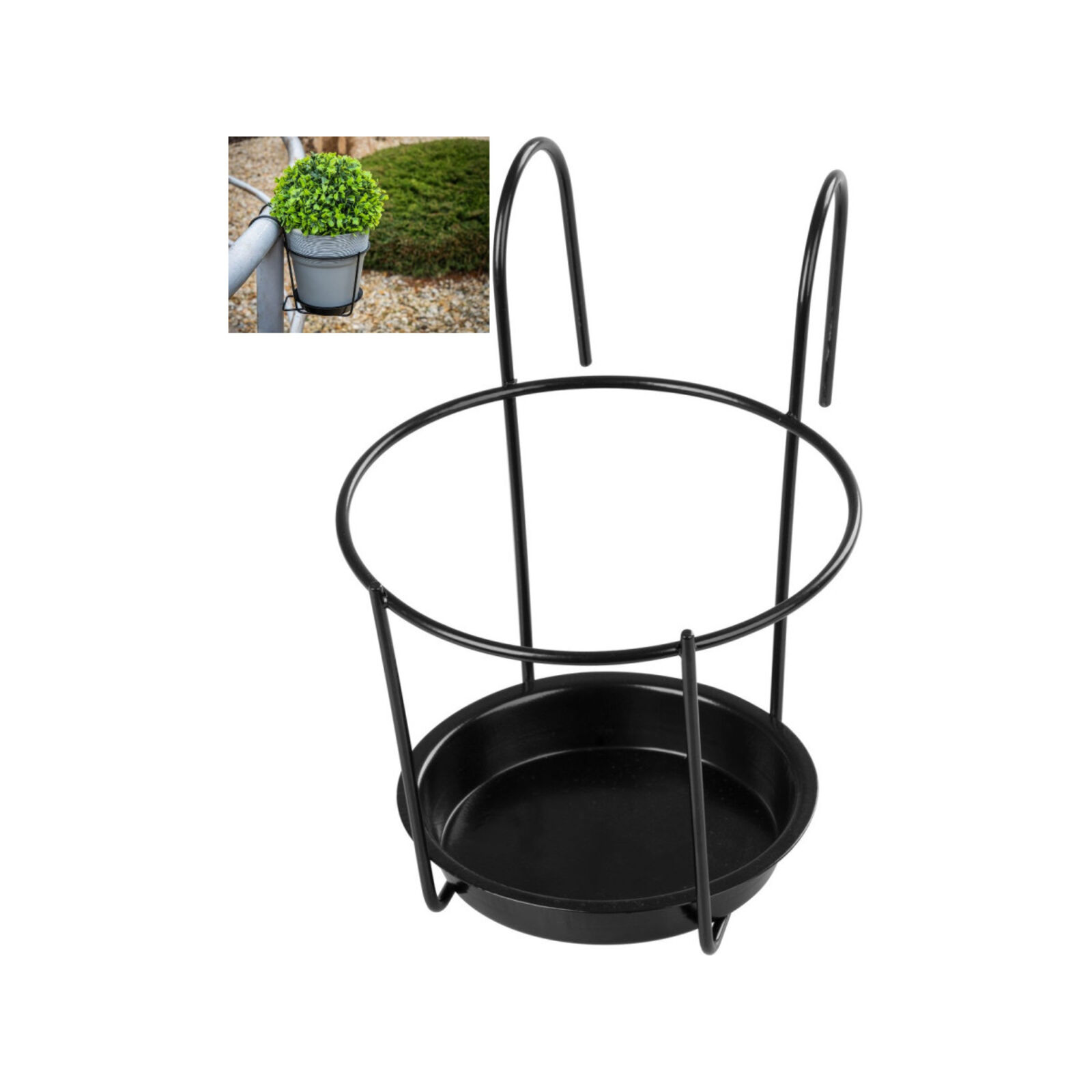 Virágcseréptartó BUMETA fém,korláthoz, balkonhoz,kerek, álátéttel, 22 cm