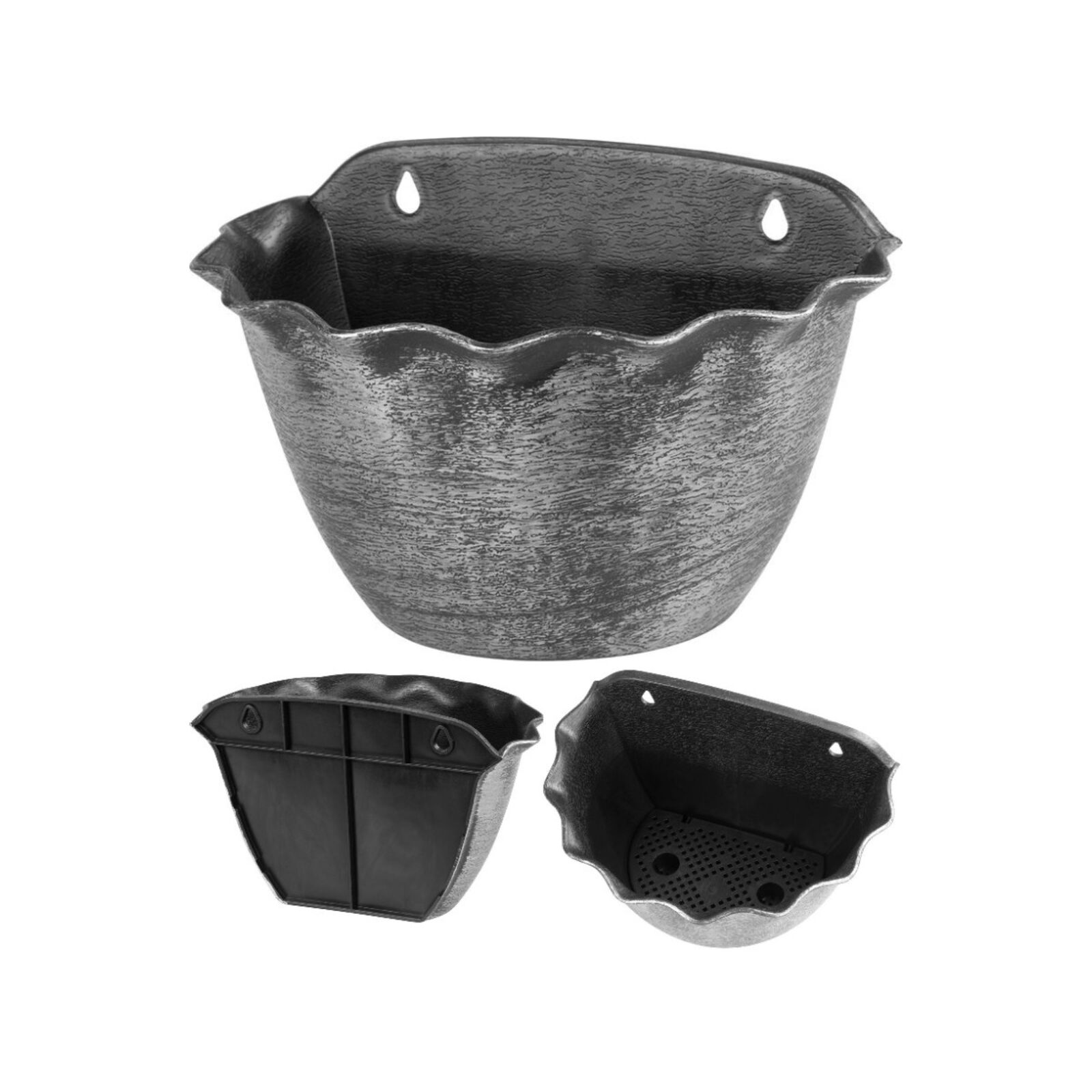 A fémhatású Wave ültetőtartó egész évben használható kül- és beltéren, erkélyen, teraszon vagy kertben. Kiváló minőségű, könnyen mosható anyagból készült, fagy- és időjárásálló. Méretek: 26x18 cm. Szín: ezüst.