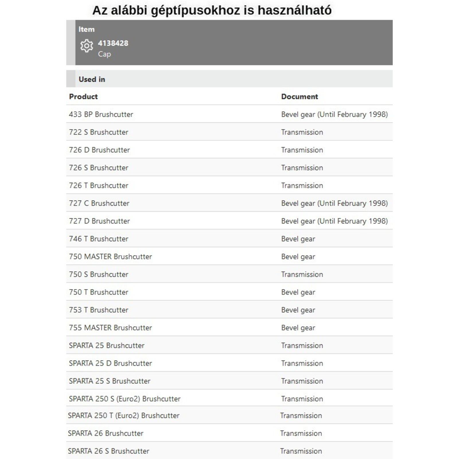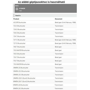 Típusok: Sparta 25, Sparta 26, Sparta 250, 433 BP, 722 S, 726 T, 746 T, 750 MASTER, 750 T, 753 T, 755 MASTER
